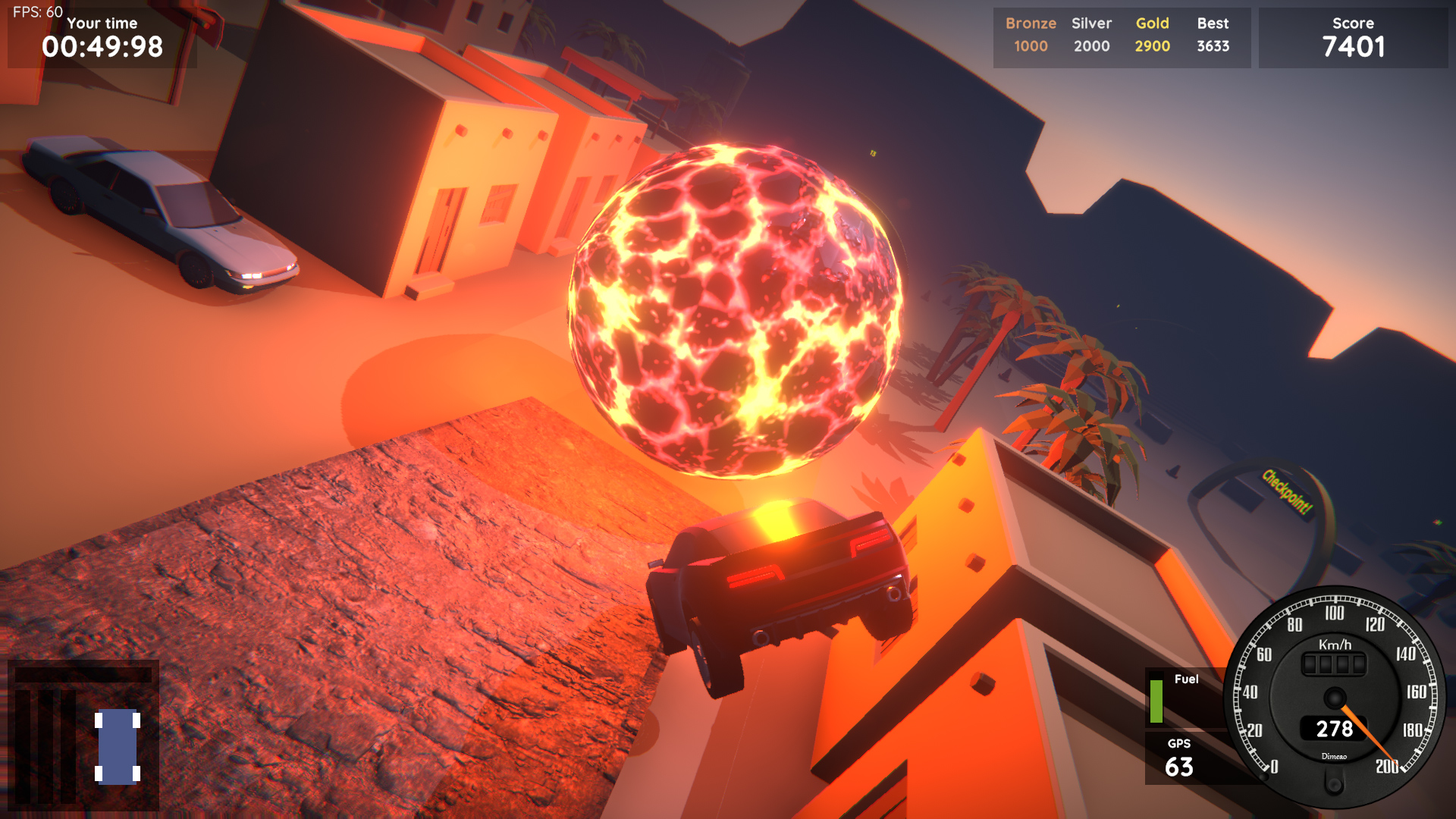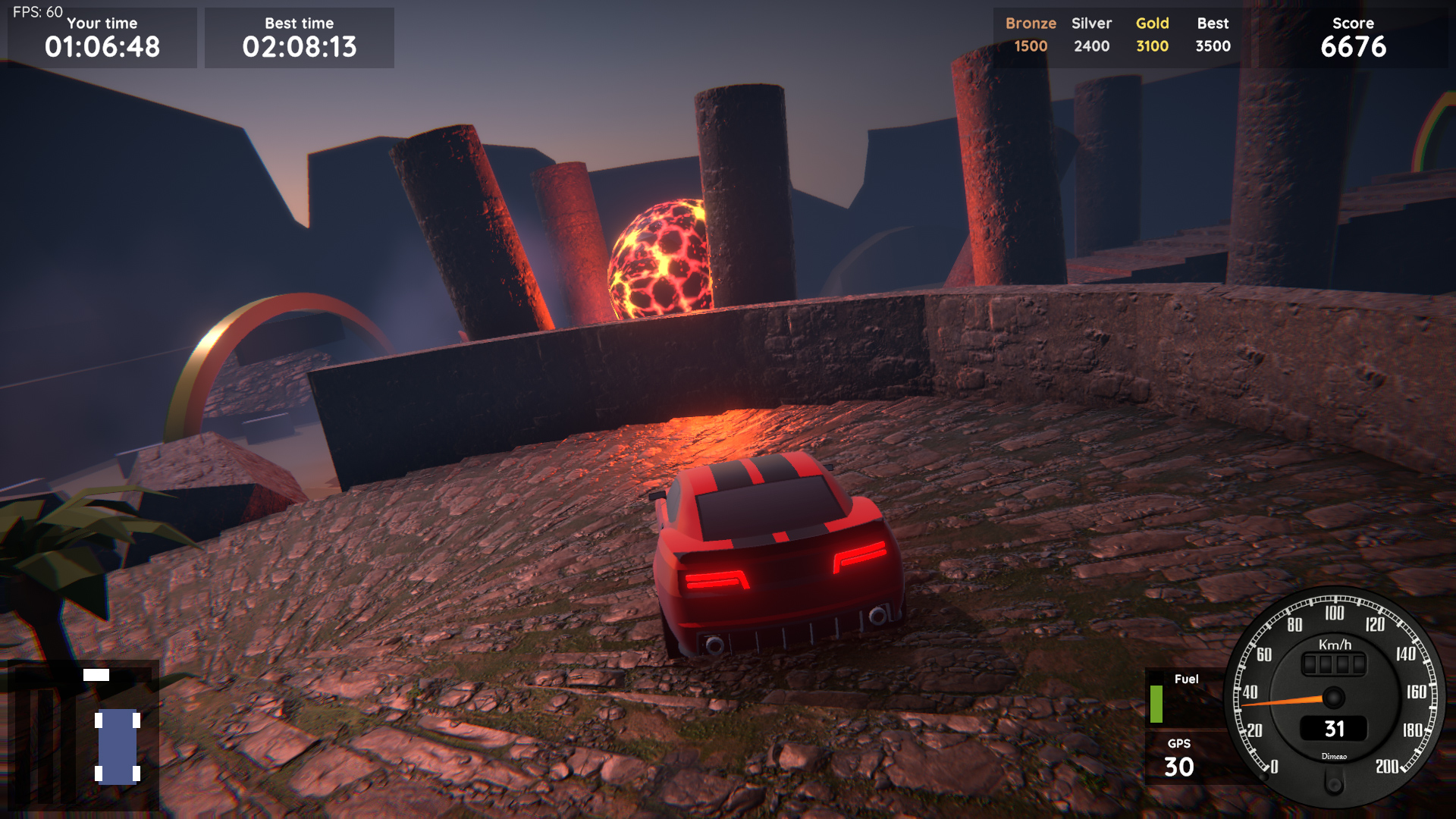 A car game that aims to be fun and addictive, with sophisticated vehicle physics and races filled with checkpoints, boosts, pitfalls and other traps. Lightweight and playable on any computer !